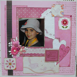 Ciao a tutte. Per partecipare al challenge 43 di Timbroscrapmania, ho deciso di preparare un LO da regalare alla mia adorata figlioccia Martina. Per la prima volta mi sono ritrovata a destreggiarmi con l'utilizzo di un colore per me davvero inusuale: il rosa. Ed ecco il risultato: